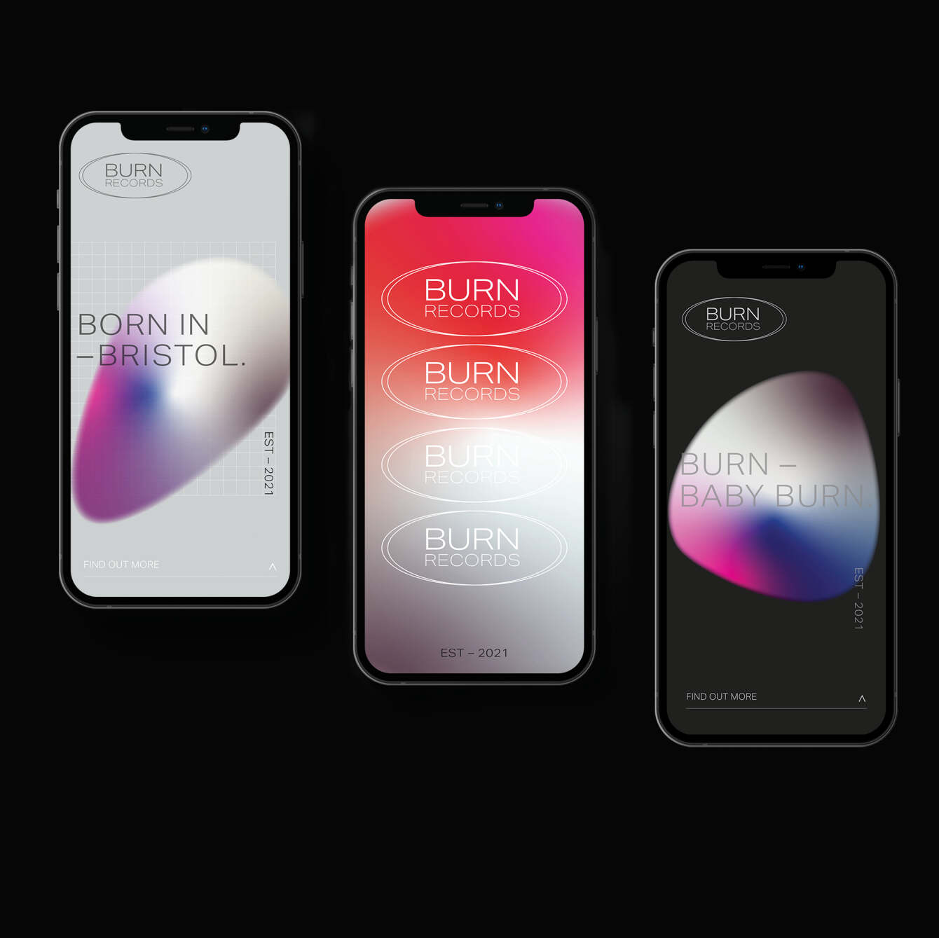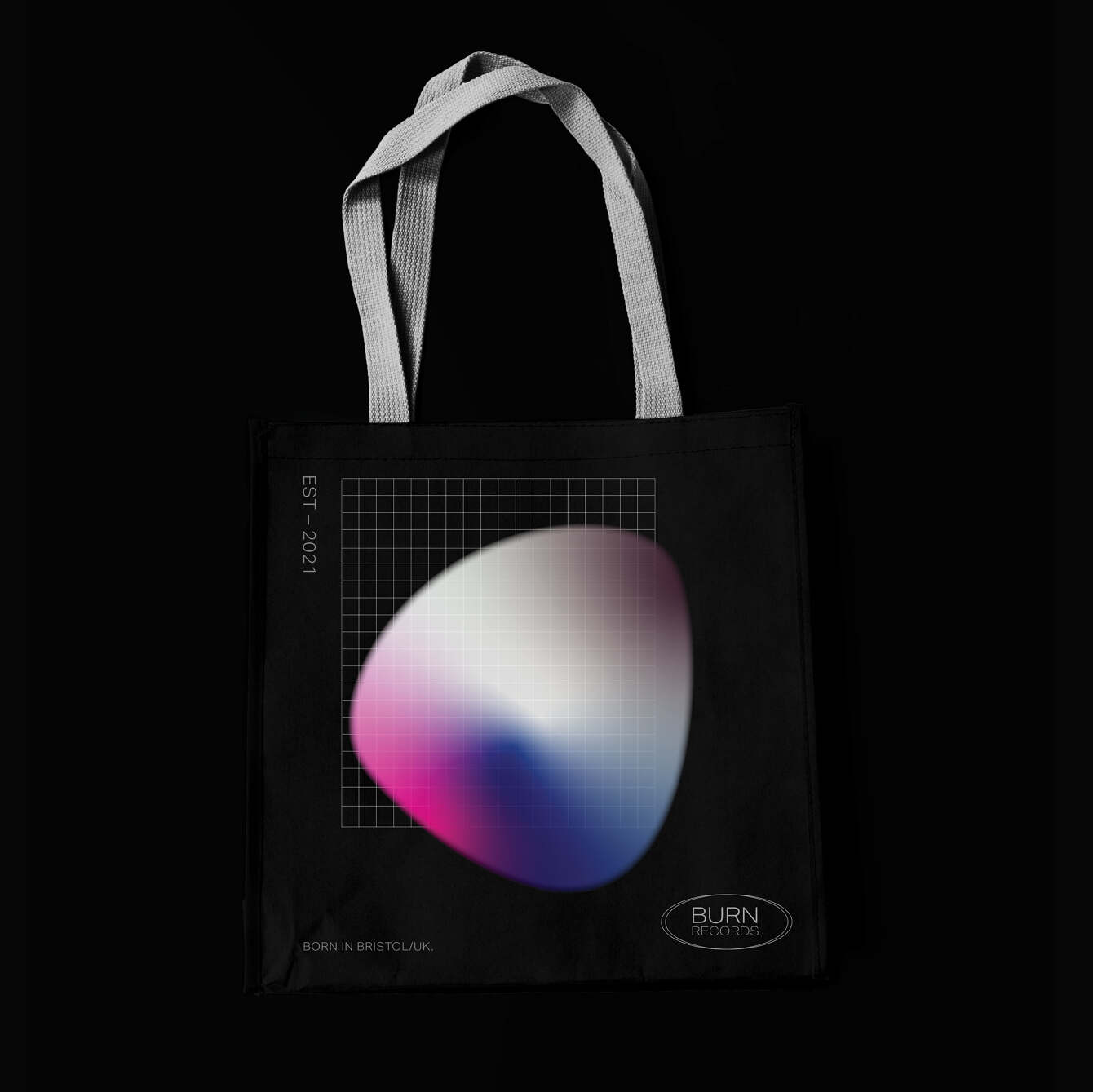was founded in Bristol/UK, in 2022. A modern type seal worked alongside energetic colourful gradients that popped off the grid, which visually shows Burn Records breaks conformity within the world house scene. (Burn Records, Born in Bristol).